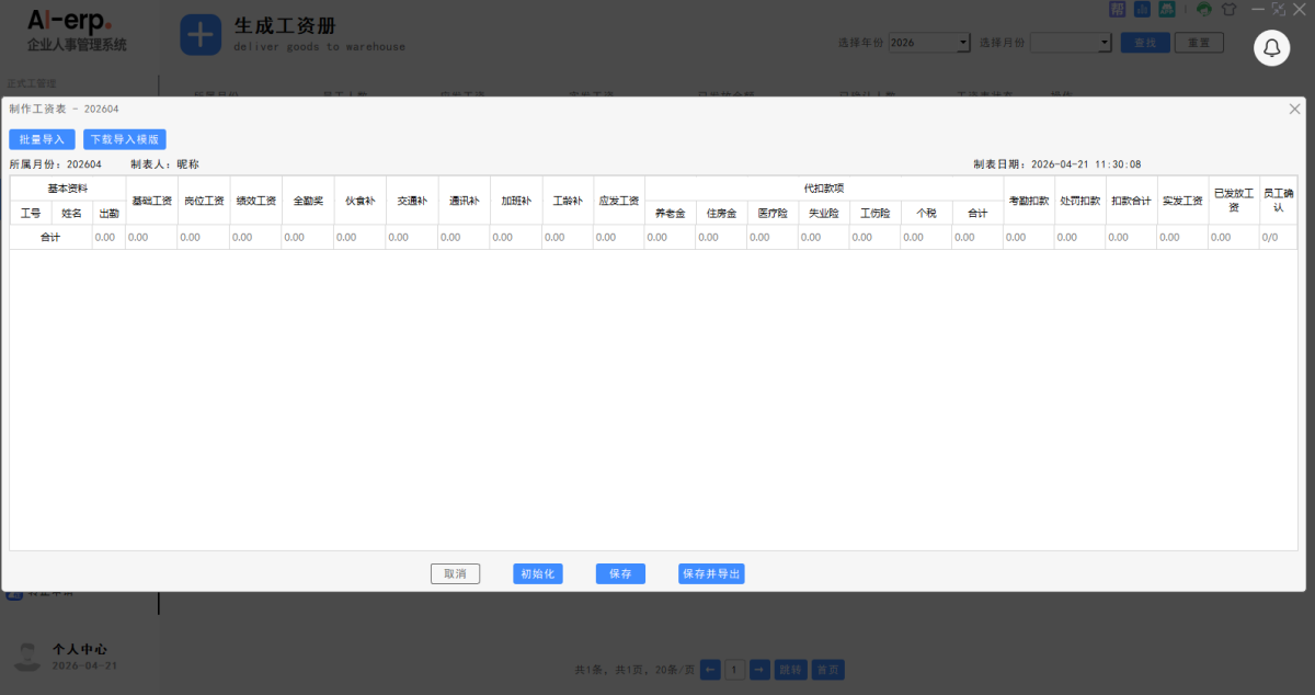 系统对接考勤设备(如指纹、人脸识别机),自动采集考勤数据,结合排班制度、请假规则智能计算出勤情况。薪酬模 块则根据考勤结果、岗位薪资标准、绩效奖金等自动生成工资单,实现考勤数据与薪酬核算的无缝衔接,减少人工核算 错误,提升薪资发放效率与准确性。