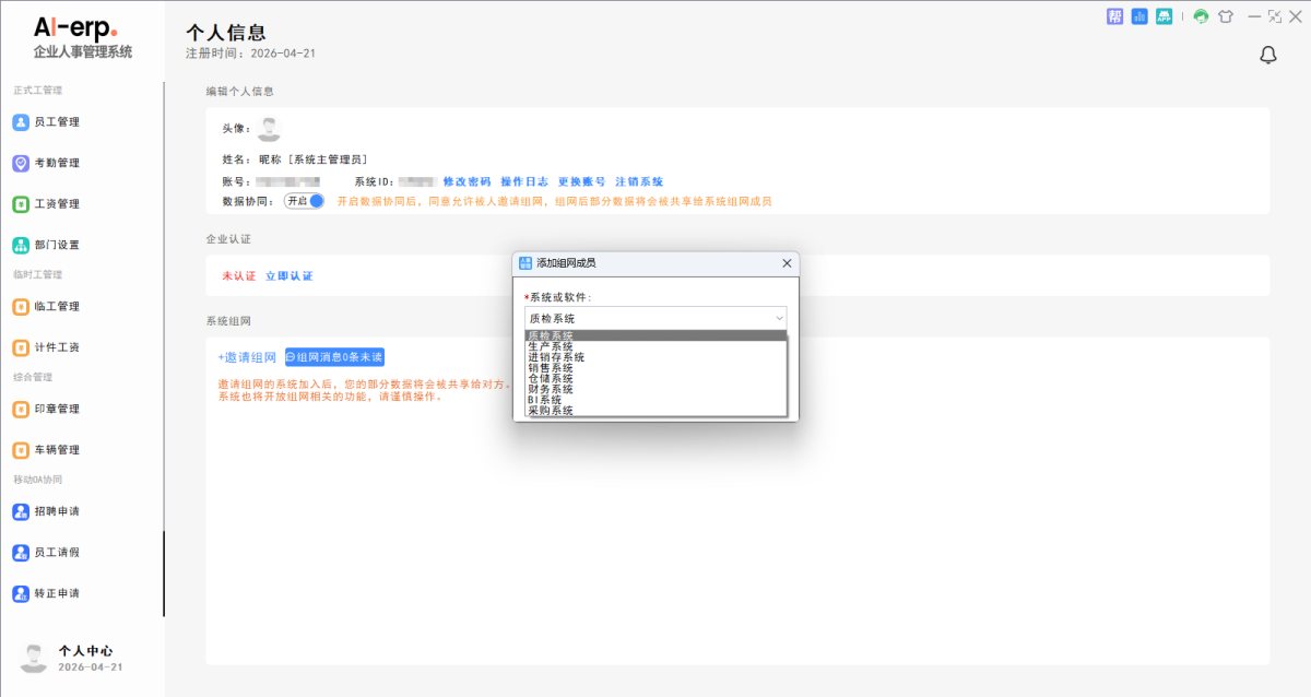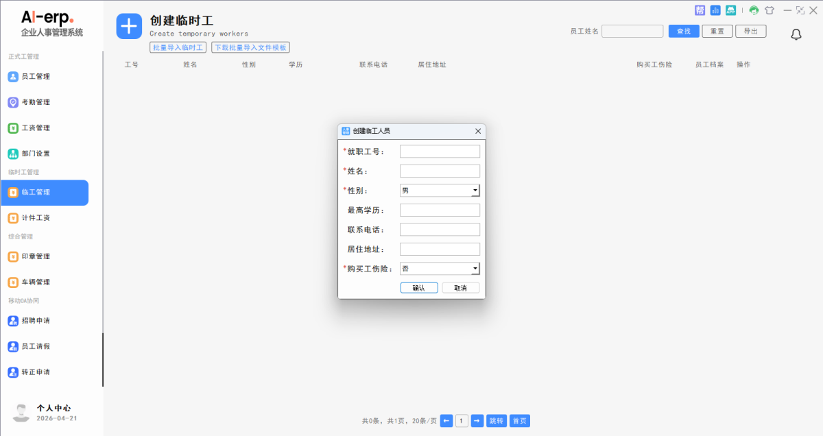 井擎云人事是一款井擎云 AI-ERP 人事工作管理助手,旨在提高企业人力资源管理效率,涵盖员工信息管理、社保管理、考勤管理、薪资管理、部门设置、临时工管理、计件工资册创建、印章管理、车辆管理、招聘申请、员工请假、转正事项审批、审批人设置及子账号管理等多功能于一体。通过智能化、自动化的管理方式,简化繁琐的人事管理流程,确保数据的准确性和时效性,助力企业实现人力资源管理的数字化转型。