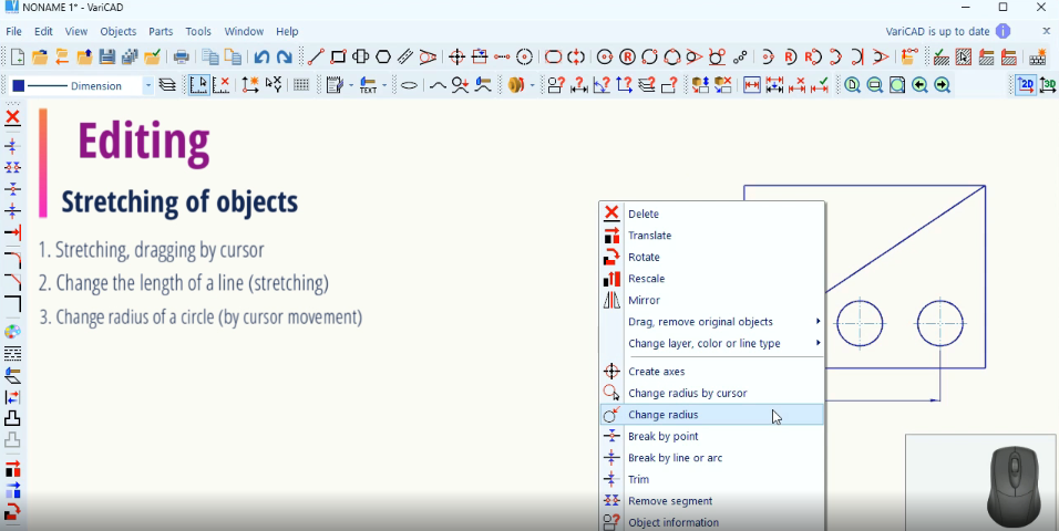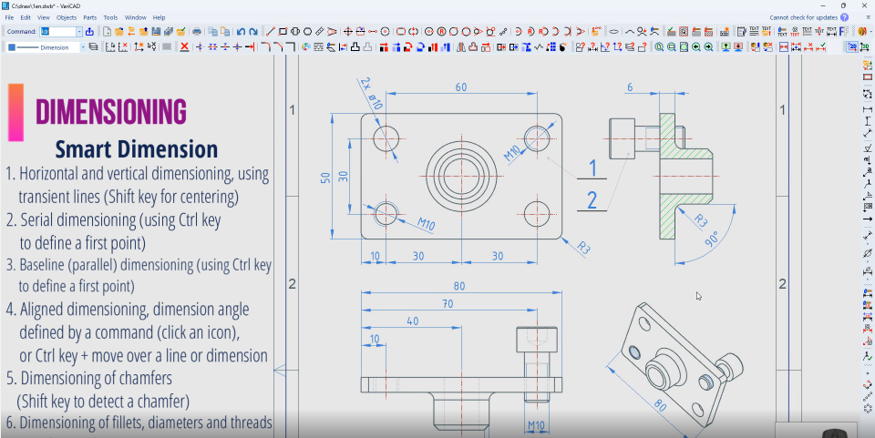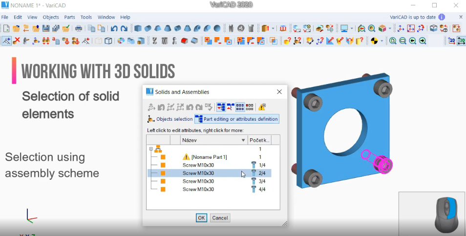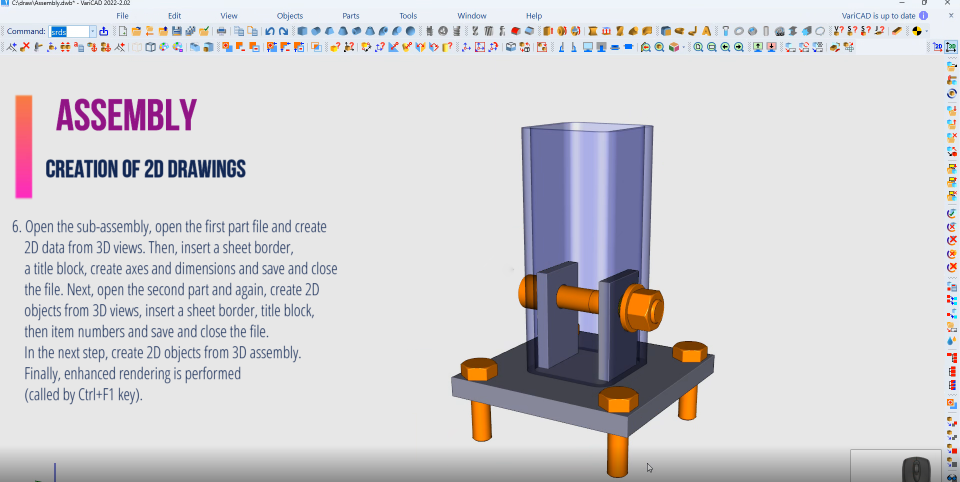 VariCAD是一款用于机械工程的3D/2D CAD软件,提供大量专业工程制图功能,软件可以建模基本的3D模型,并绘制2D平面图像,软件还提供模型之间的碰撞测试,可以模拟软件中装配体之间碰撞后产生的情况。用户可以检查模型的抗冲击效果,并利用该功能进行3D装配体的重叠,软件还可以模拟板的弯曲,可以通过这个功能测试材料的强度,此功能可以有效节省建筑成本,保证模型的强度。VariCAD提供标准的机械工程零件库(ANSI, DIN),可计算标准机械零件的几何物理参数,生成用料清单。使用户能快速的创建,评估及修改自己的模型。