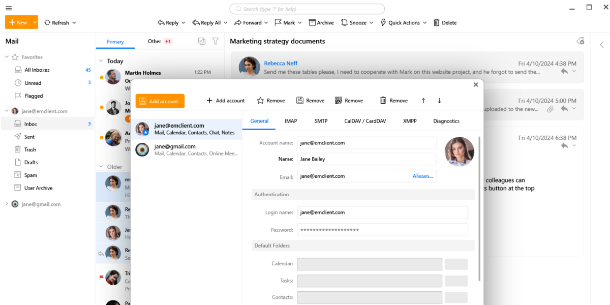 eM Client支持所有主要服务,包括Gmail,Exchange,iCloud和Outlook、com。您可以在服务器部分找到更多信息。