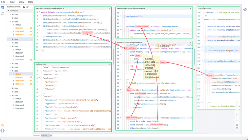CODEMAP源码阅读器是一款集合代码结构可视化、高亮、标注等多种辅助阅读手段,现目前已经支持javascript、typescript、c、c++、python、golang、java等多种编程语言的辅助阅读源代码工具。通过CODEMAP源码阅读器,即使是初学者也能顺利快速地阅读复杂开源项目,通过代码编辑器平铺布局、跳转结构自动连线、手动添加高亮、标注等形式,使代码结构清晰易懂,对于分析复杂项目的框架结构具有极其重大的作用,能成倍地提高用户阅读源代码的效率。在底层,CODEMAP源码阅读器通过支持vscode的lsp(language server protocol)协议,使得CODEMAP源码阅读器具有各种语言的语法解析能力,方便用户能快速跳转、查看源代码。现目前,CODEMAP源码阅读器通过融合各类插件,已经完美支持js、ts、c、c++、java、golang、python等多种主流语言,未来CODEMAP源码阅读器还计划支持更多语言。