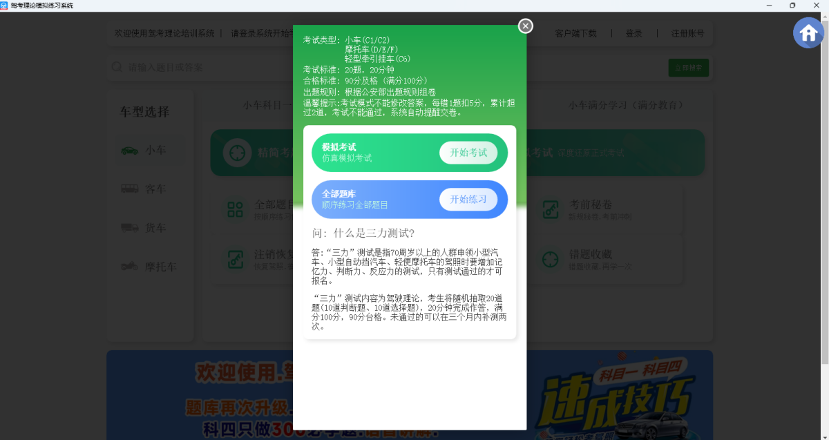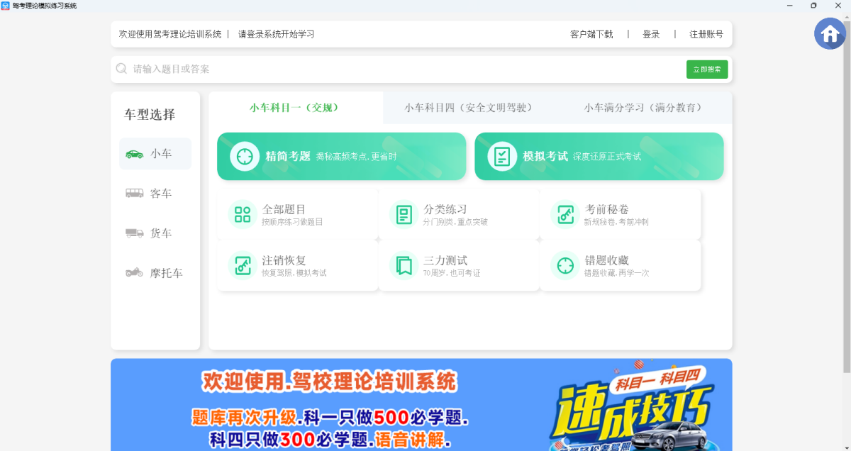 快通驾考是一款为驾考学员专业打造的科一科四考前强化,科二科三快速学习的驾考技巧软件,科一科四技巧归类精准易懂,音画合璧强化记忆,只需要学习500个必考题即可帮您通过科一科四。