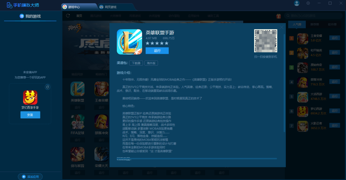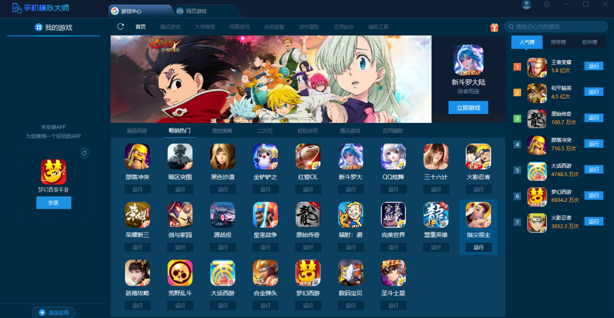 手机模拟大师是完美兼容手游,高清大屏,完美画质,给你真实享受.超越手机高端运行.PC深度适配.游戏不卡顿.操控无压力!