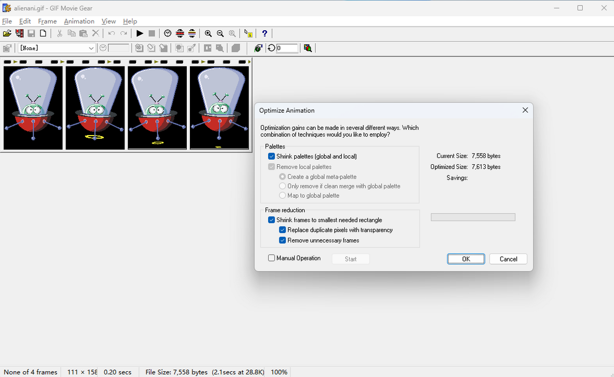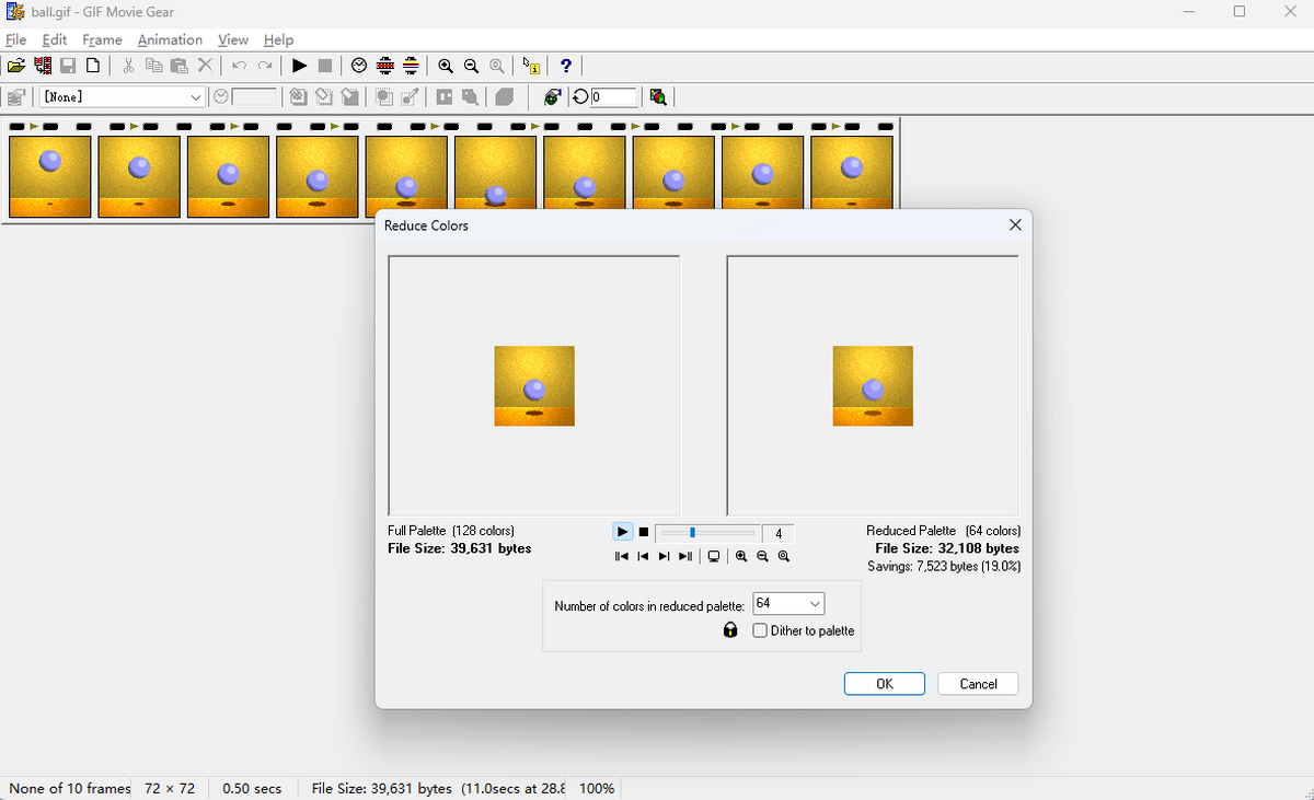 通过前后动画视角进行调色板缩小,帮助缩小文件大小,同时保持动画的图像质量。