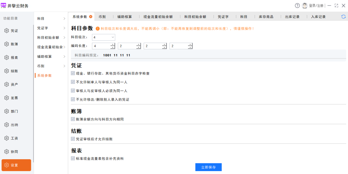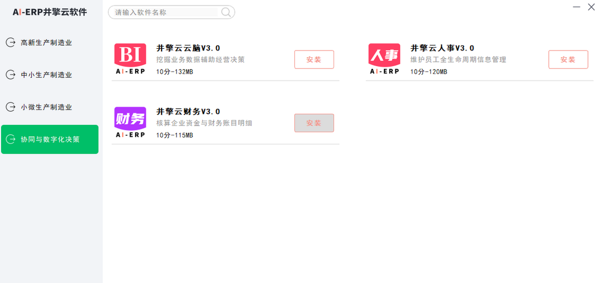 井擎云财务系统为井擎云 AI-erp 财务系统,是一款深度融合人工智能技术与传 统ERP财务核心功能的创新型财务管理平台。该系统以企业财务数字化转型 需求为导向,集成了智能核算、智能预算、智能风控、智能分析等多元化功能模块,旨在通过智能化手段优化财务工作流程、提升财务管理效率、降低运营风险,并为企业决策提供精准的数据支持。系统不仅涵盖了从凭证处理、账务核算到报表生成的全流程财务基础操作,还借助AI算法实现了对财务数 据的智能挖掘与分析,能够自动识别异常交易、预测财务趋势、辅助制定预算方案,从而将财务人员从繁琐的重复性工作中解放出来,使其更专注于价 值创造和战略规划层面的工作。同时,系统支持多维度数据整合,可与企业内部的业务系统、供应链系统等进行无缝对接,打破信息孤岛,实现财务数据与业务数据的实时共享与联动,构建起业财融合的一体化管理体系。