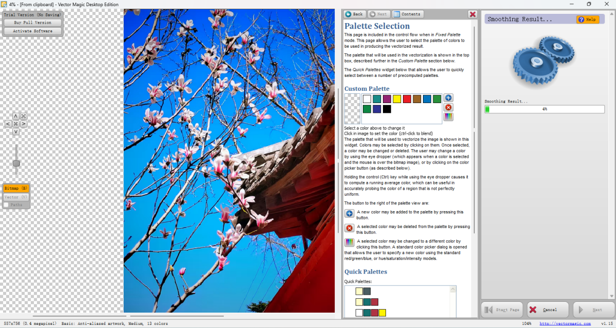 Vector Magic是一款强大的AI图片矢量化处理工具,为需要将JPG、GIF、PNG等格式的位图转换成高质量矢量图片而设计,软件不仅提供全自动矢量化功能,还具备子像素精度和边缘平滑处理能力。Vector Magic采用先进的自动矢量化技术,能够将位图图像快速、准确地转换为可编辑的矢量图形,软件在矢量化过程中能够保留原始图像的细节和颜色,生成平滑、清晰的矢量图形,确保了高质量的转换效果。软件适用于设计师、插画师、工程师使用。