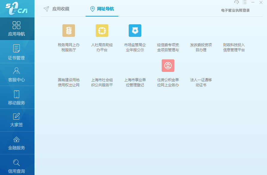 客户端软件中提供上海市政府机构网上办事站点的链接,用户点击后可打开对应的页面。