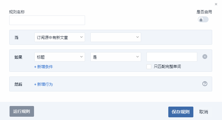 Inoreader灵活的过滤和规则功能一直为人称道,重新设计后的过滤器更加直观易用。而新版规则编辑器虽然在核心功能上的操作逻辑没有太大变化,但更具现代感的扁平化设计和简化的对话框布局让它使用起来更加友好,同时还显著提升了性能,即使加入大量规则也不会卡顿。