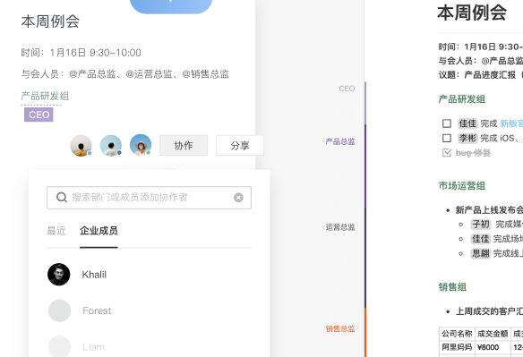比如在每次会议结束后,可以将会议总结内容写在石墨文档中,标注好各个事项的截止日期,方便及时跟踪进度。这样也能保证每个人对会议内容及要求都理解到位。