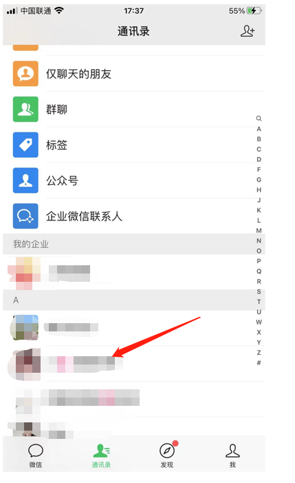 2. 然后在通讯录里找一个群聊的好友,点击进入他的主页。