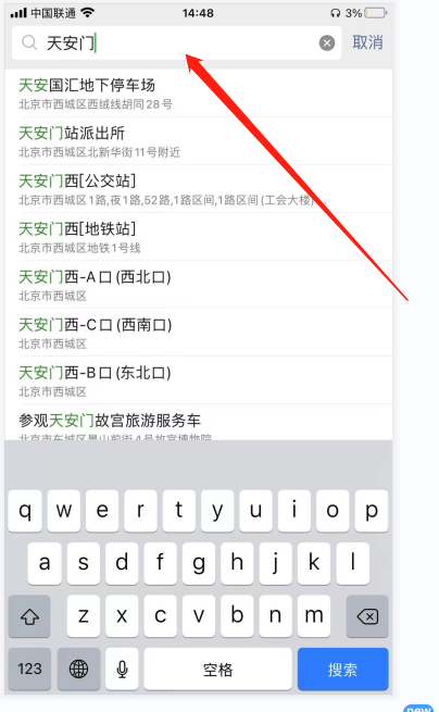 第四步:进入到所在位置界面后,点击搜索附近位置图标。