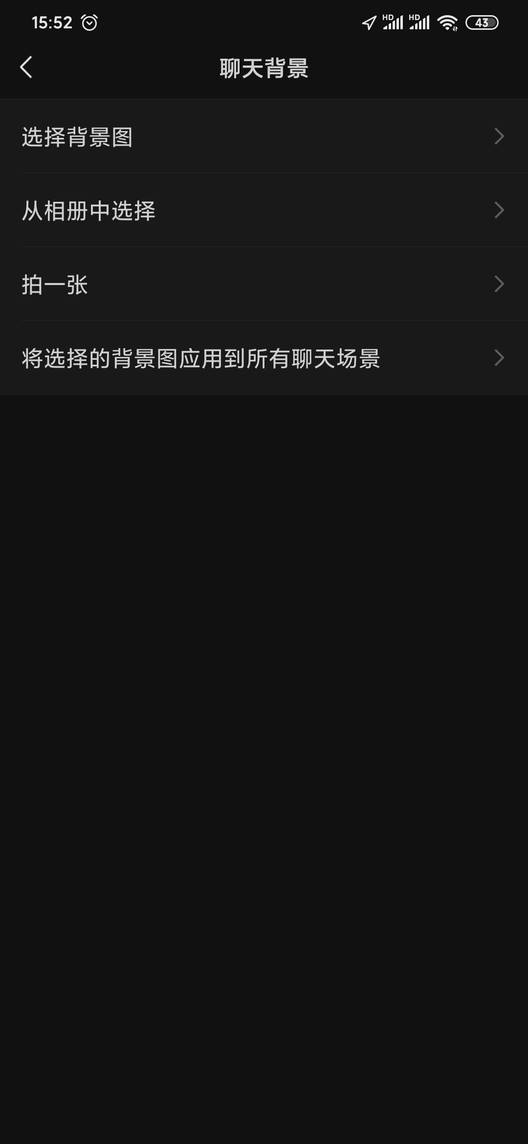 第四步,点击【聊天背景】,选择背景图,可以选择系统自带的背景图,也可以现拍或者用相册内的照片作为背景。