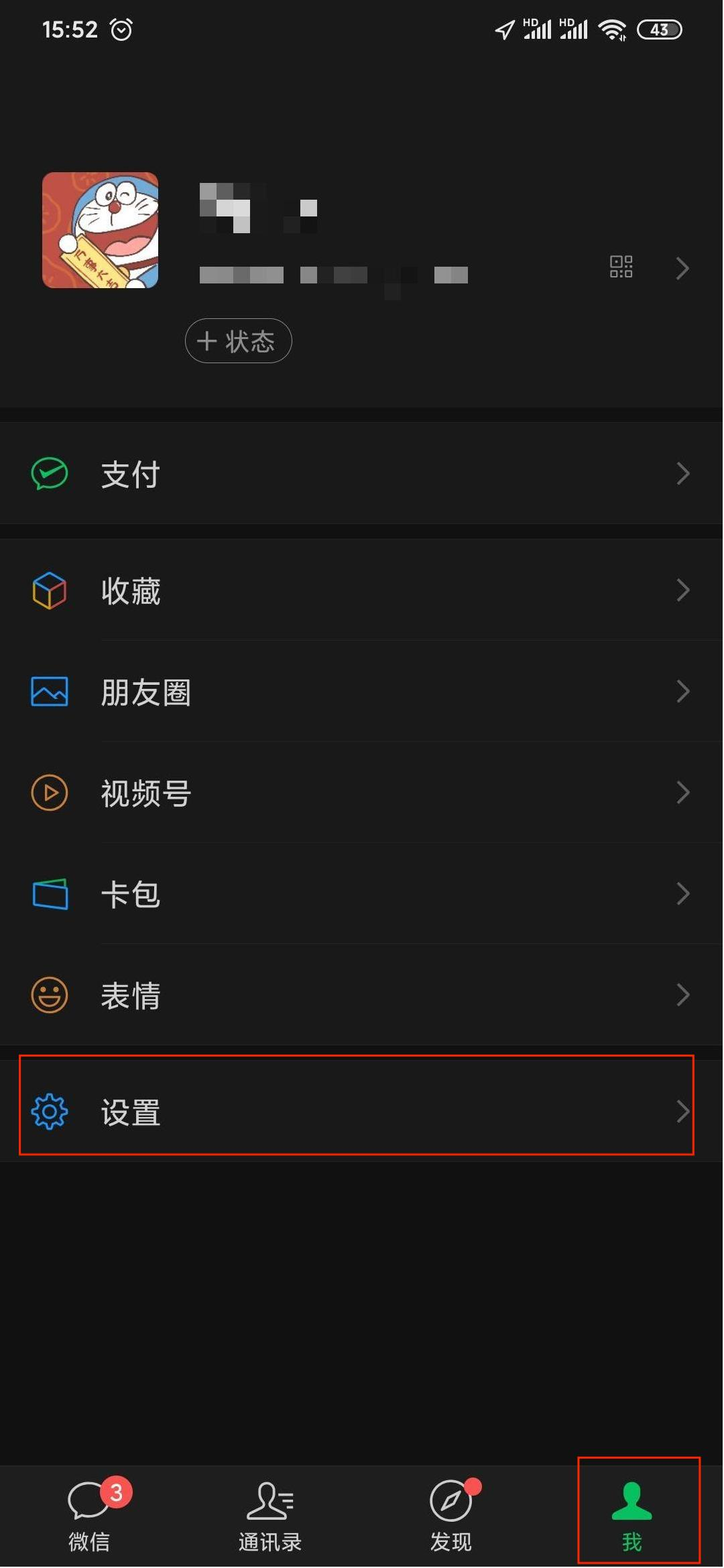 第一步,打开我们的微信,将界面切换到右下角“我”的页面;