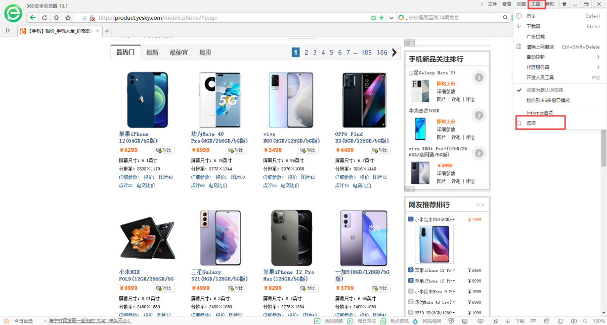 第一步,在电脑上找到360浏览器软件,然后点击打开,进入到浏览器的主界面当中后,找到界面右上角的【工具】选项,并点击打开,然后找到【选项】功能,并点击进入。