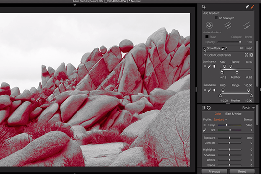 新增功能精确控制应用图像调整的位置,Exposure 可以指定由亮度,色相和饱和度组合定义的区域。