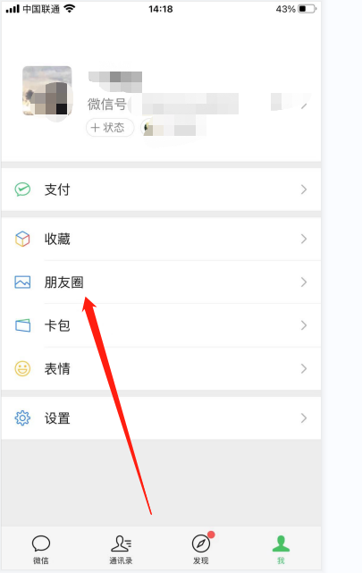 2. 然后接着点击朋友圈。
