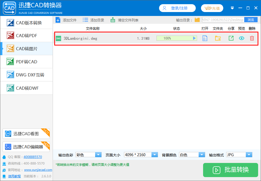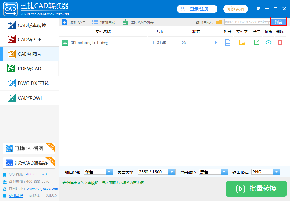 第二步,进入到软件界面后,我们选择界面左侧的【CAD转图片】功能,并点击。
