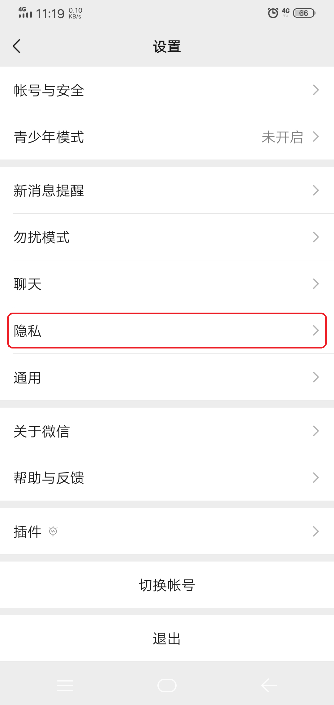 第三步,进入到微信的设置界面后,找到【隐私】选项,并点击进入。