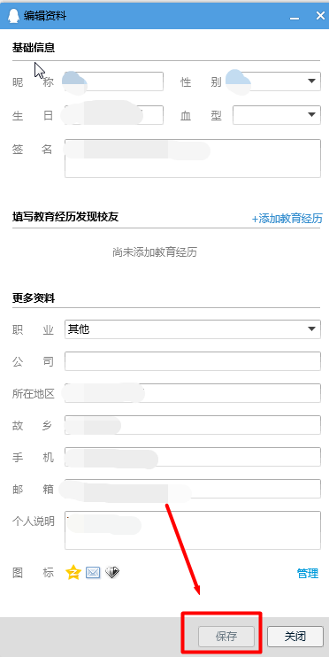 第四步,开始对个人信息进行修改或补充,完成后点击下方“保存”就可以了。
