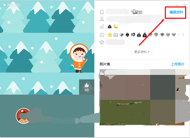 第三步,这样该QQ号的个人主页便打开了,在个人主页右侧填写着我们部分个人资料,选择右上角的“编辑资料”;