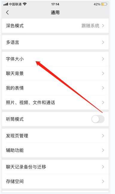 4. 进入通用界面后,会看到下方有一个字体大小,然后点击它。