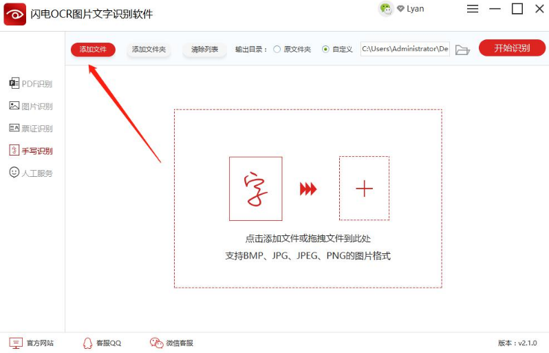 第二步,点击左上方“添加文件”,将需要识别的手写文字图片添加进来。