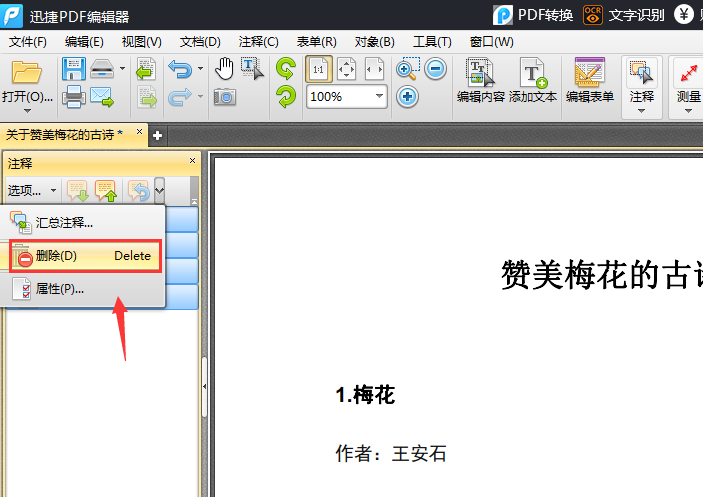 文档中的注释是为了让大家更容易理解内容,但是如果注释多了,就会显得文档内容特别乱。如果手里的是一个注释比较多的PDF文档,要想把这些多余注释删除掉怎么办呢?一个一个删是不现实的,如果能批量删除所有注释就方便多了,批量删除注释也不是什么难事,用迅捷PDF编辑器就能实现。