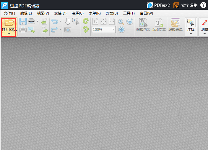 第一步,在电脑上运行迅捷PDF编辑器软件,进入主页之后,点击【文件】下面的【打开】按钮,把需要删除注释的PDF文件添加进来。
