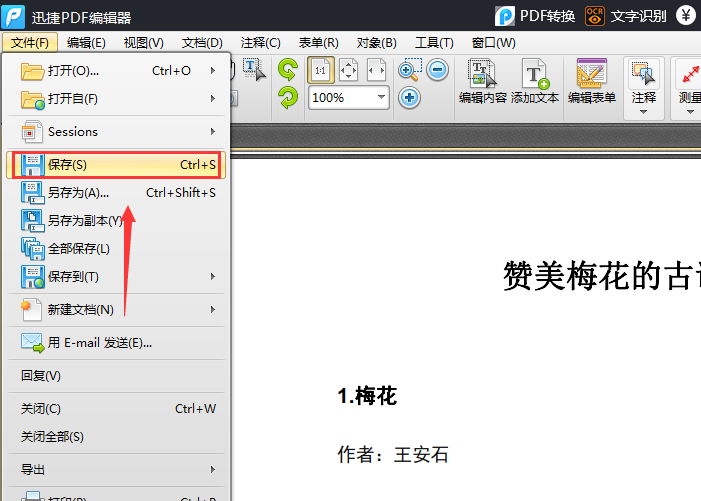 第四步,PDF文档编辑完成之后,及时保存才是硬道理,要不然就得重新操作了。