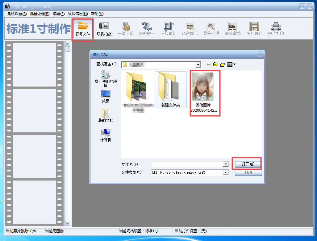 第二步,进入到软件界面后,找到上方的【打开文件】图标,将需要进行处理的图片添加进来。