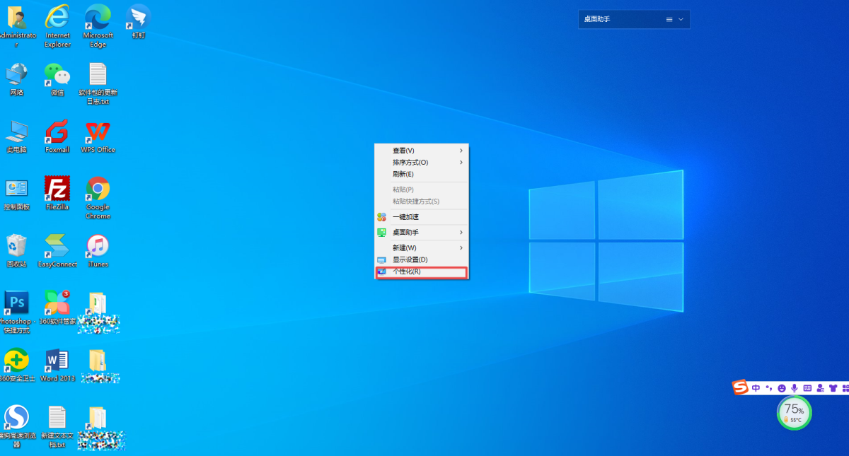 第一步,在电脑桌面的空白处,按下鼠标右键,然后在弹出的选项中选择【个性化】功能,并点击进入。