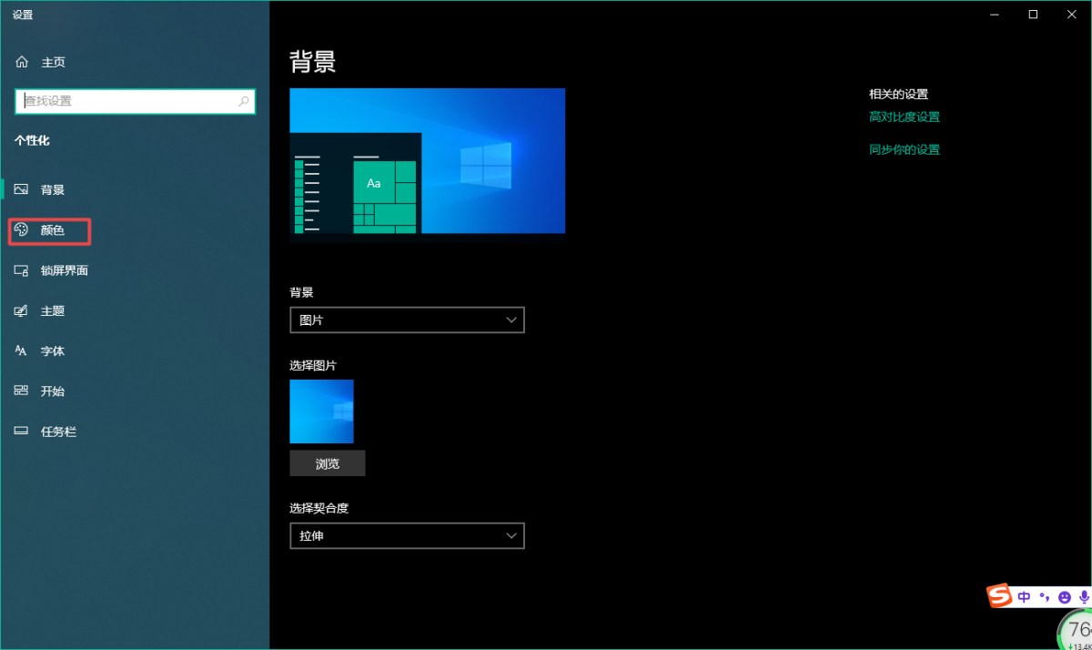 第二步,接着系统就会弹出个性化的设置界面,在界面的左侧找到【颜色】选项,并点击打开。