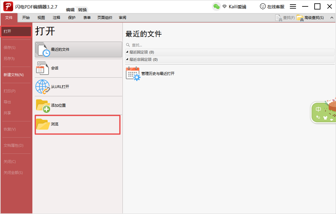 第二步,进入到软件界面后,我们找到【打开】下面的【浏览】选项,然后将需要添加电子签名的PDF文件添加进来。