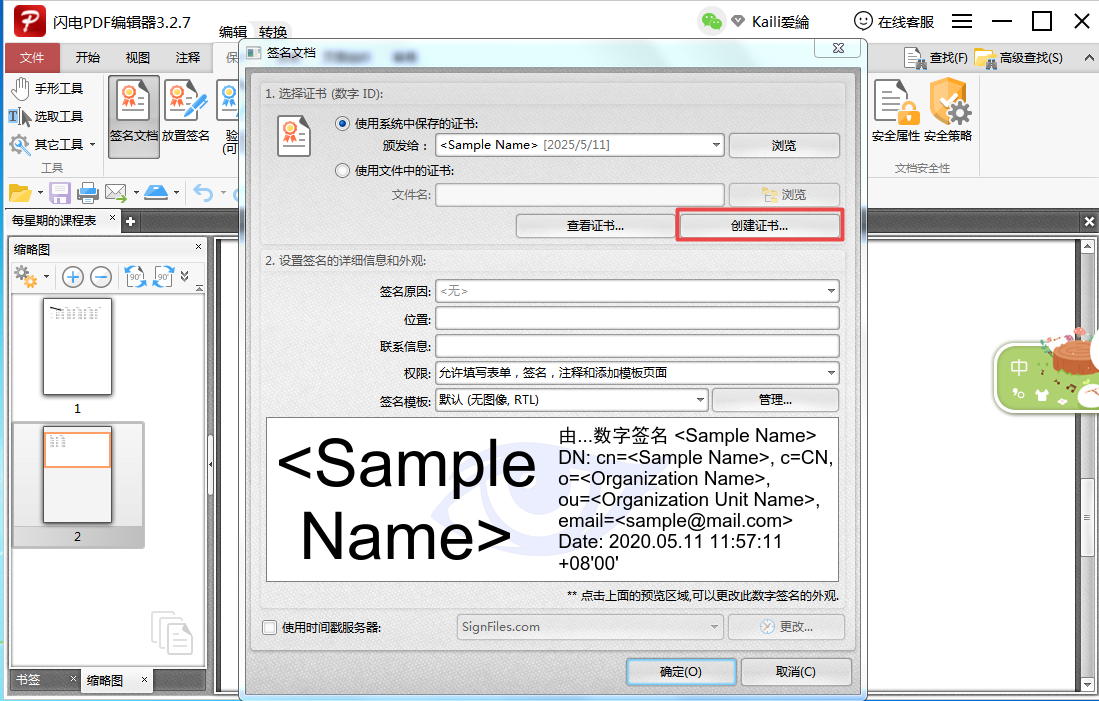 第六步,进入到签名文档界面后,我们在界面当中找到【创建证书】按钮,并点击打开。