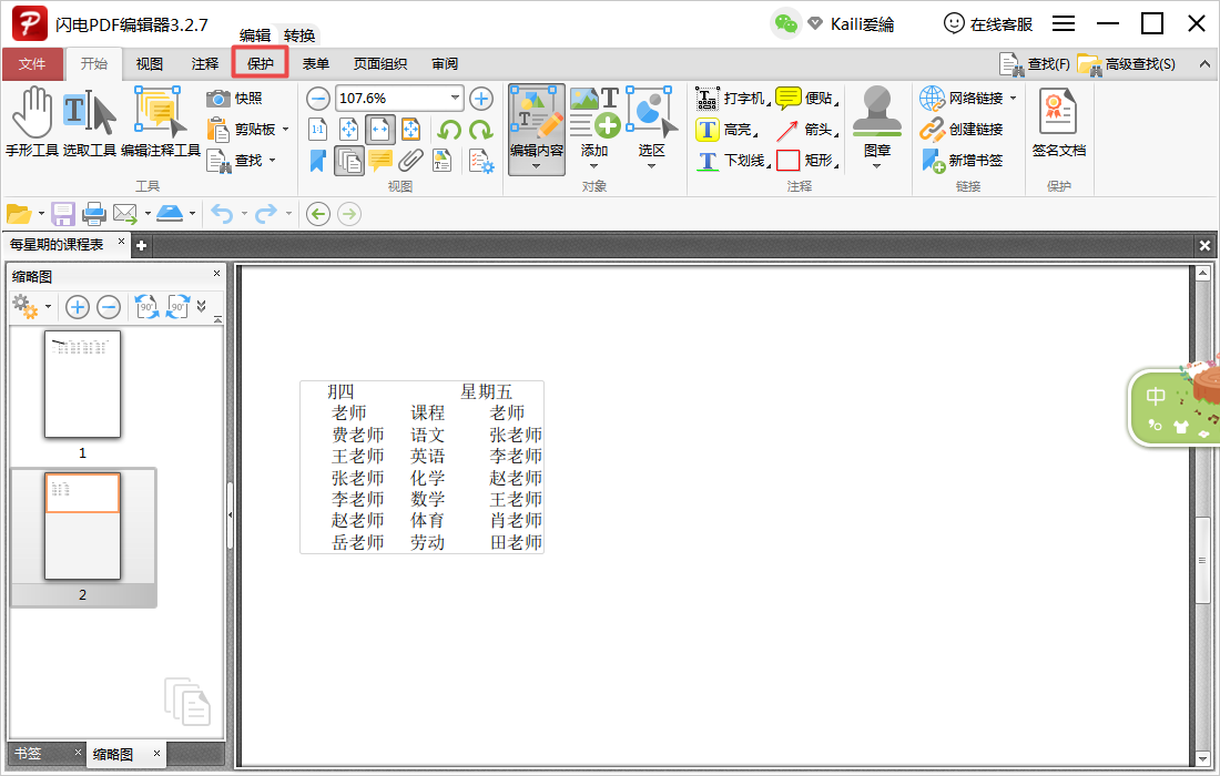 第三步,PDF文件打开后,我们找到软件界面上方的【保护】功能,并点击。