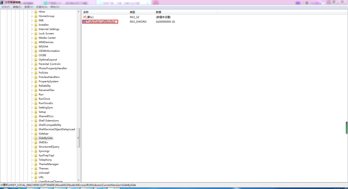 【HKEY_LOCAL_MACHINE\SOFTWARE\WOW6432Node\Microsoft\Windows\CurrentVersion\SideBySide】路径当中去,重复上面的操作即可。