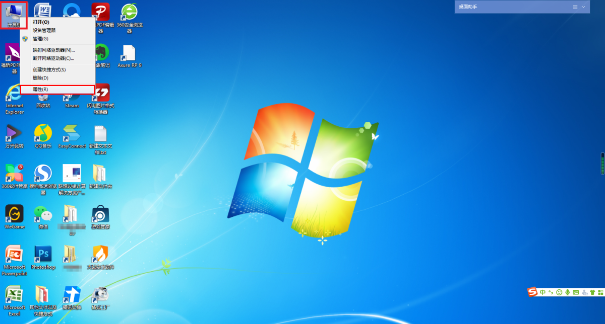 第一步,在电脑的桌面上,找到【计算机】图标,然后按下鼠标右键,接着在弹出的选项当中,选择【属性】功能,并点击打开。