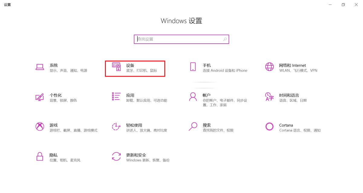 第二步,接着电脑会弹出【Windows设置】的窗口,在此窗口中,我们找到【设备】功能,并点击进入。