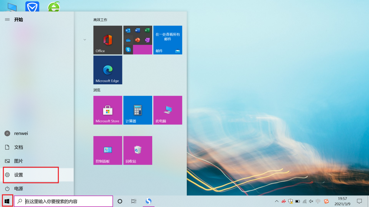 第一步,在笔记本电脑的桌面上,找到桌面左下角的【开始菜单】图标,然后点击它,接着在其弹出的选项中,找到小齿轮的【设置】图标,并点击进入。