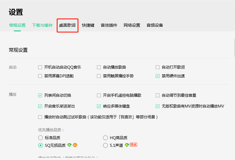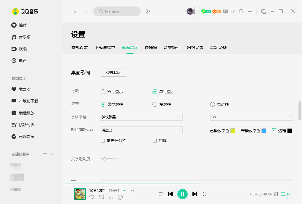 第四步,点击桌面歌词选项就能在里面设置歌词样式了。