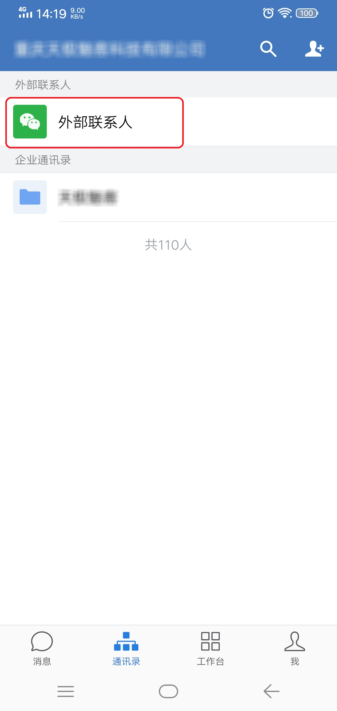 第二步,进入到通讯录界面后,我们找到【外部联系人】选项,并点击打开。