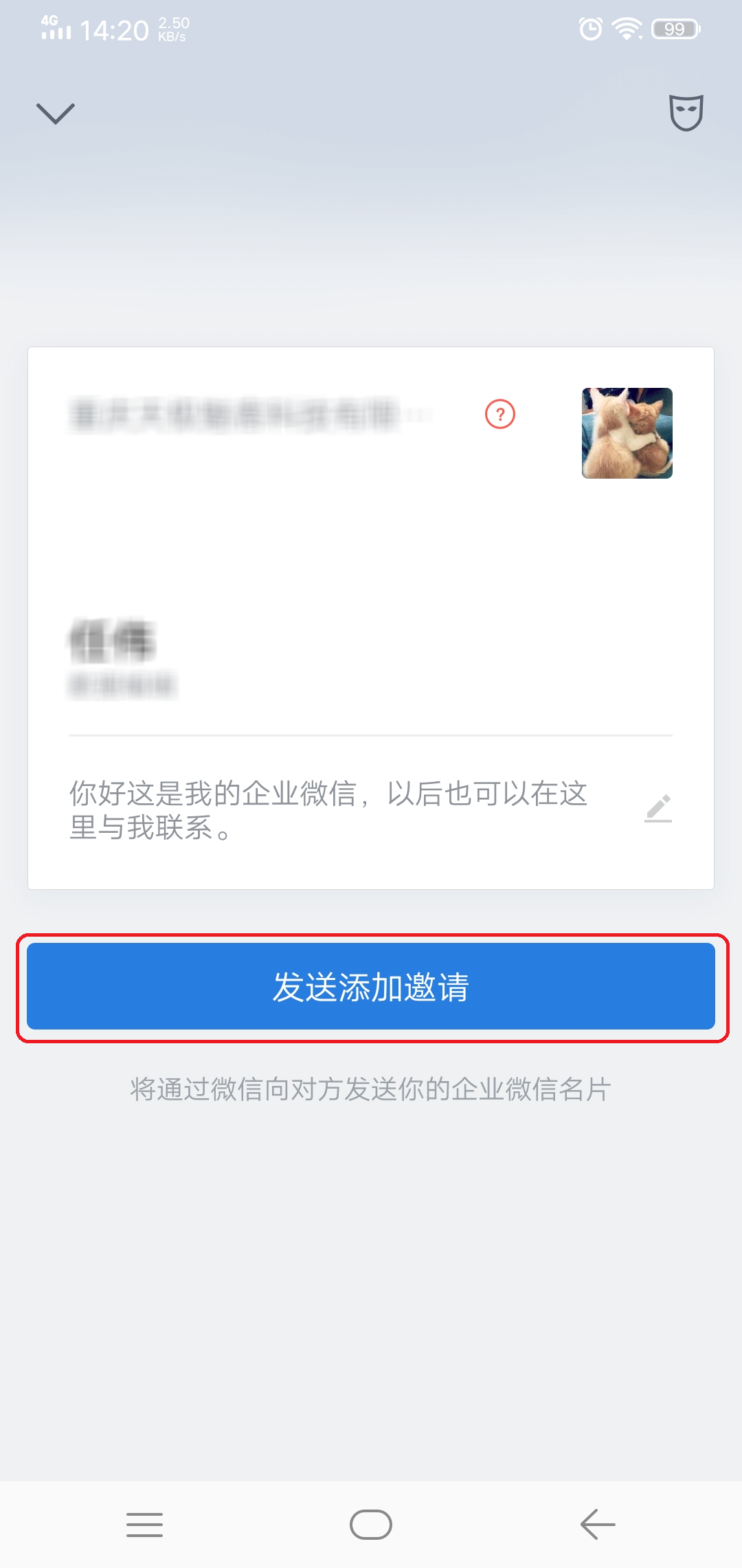 第六步,界面软件界面就会弹出邀请好友的界面,我们直接点击界面中的【发送添加邀请】按钮就可以了。