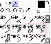 3:然后就可以使用魔棒了,魔棒有时候点击画面选不了全部画面,那么就会用到选择笔,当然选区擦的作用相当于橡皮,可以擦掉不小心手抖涂出线的选区。