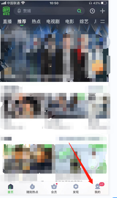 1. 首先打开爱奇艺,进入到主界面后,点击下方我的。