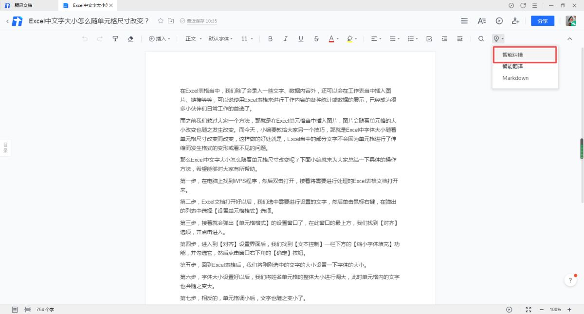 那么腾讯文档当中的智能纠错功能到底怎么用呢?下面小编就来为大家介绍一下具体的使用方法吧,希望能够对大家有所帮助。