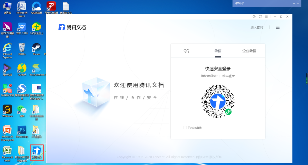 第一步,在电脑上找到腾讯文档软件,然后双击打开,接着登录到自己的账号当中去。