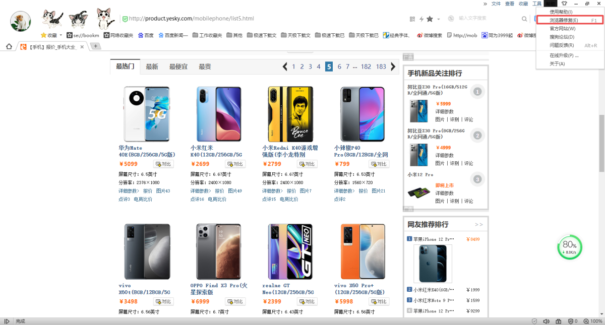 第二步,然后在弹出的选项中,找到【浏览器修复】功能,并点击它。