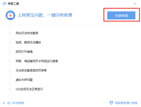 第三步,接着软件就会弹出【修复工具】的窗口,点击【快速修复】按钮。