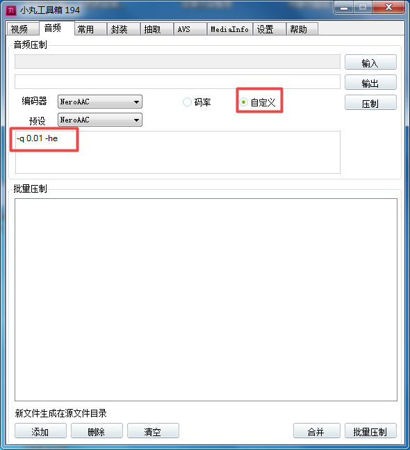 自定义,参数选择 -q 0.1 -he ,压制出来音频码率约22Kbps。
