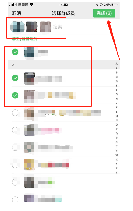5. 然后选择群成员并进行勾选,之后点击完成就可以了。